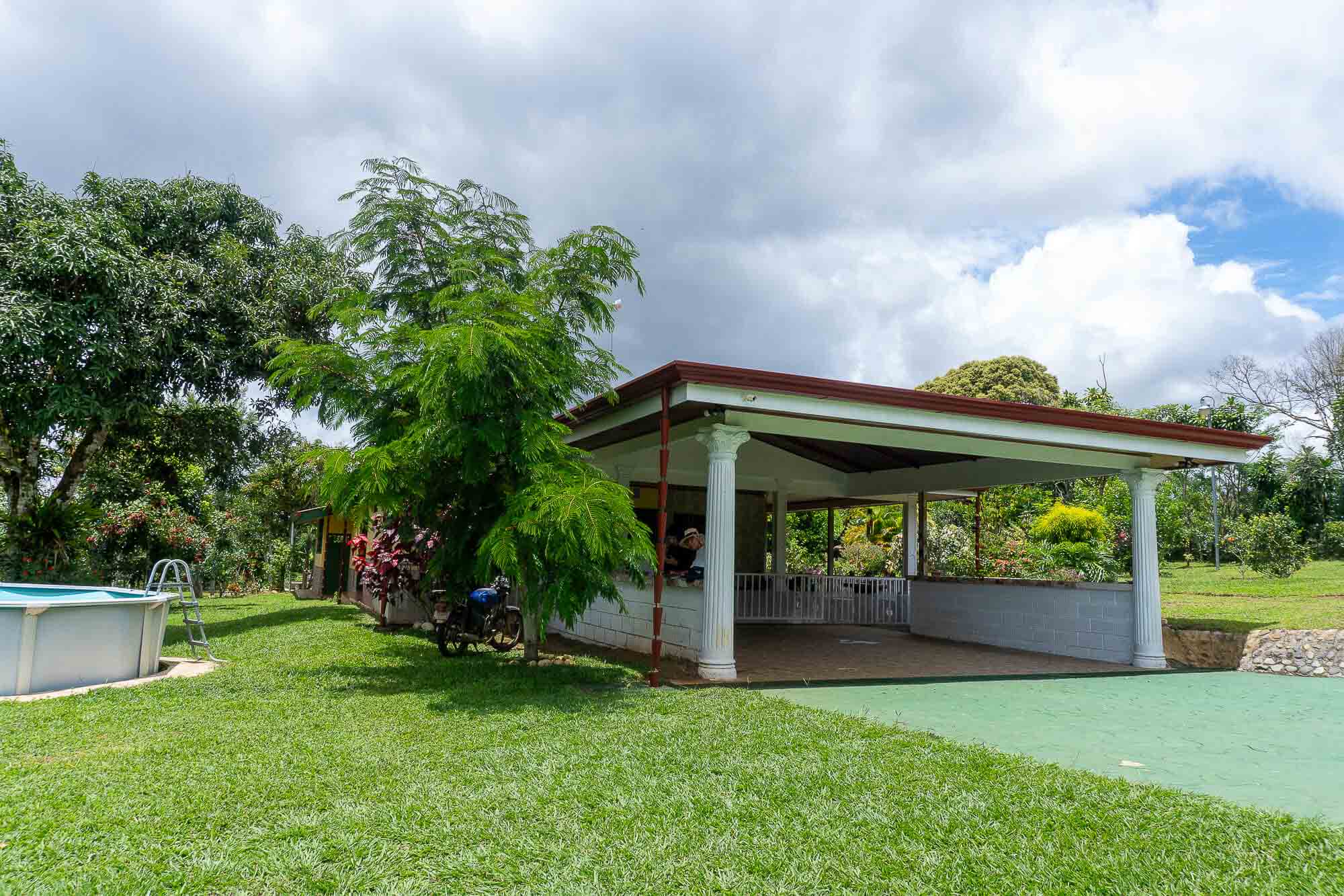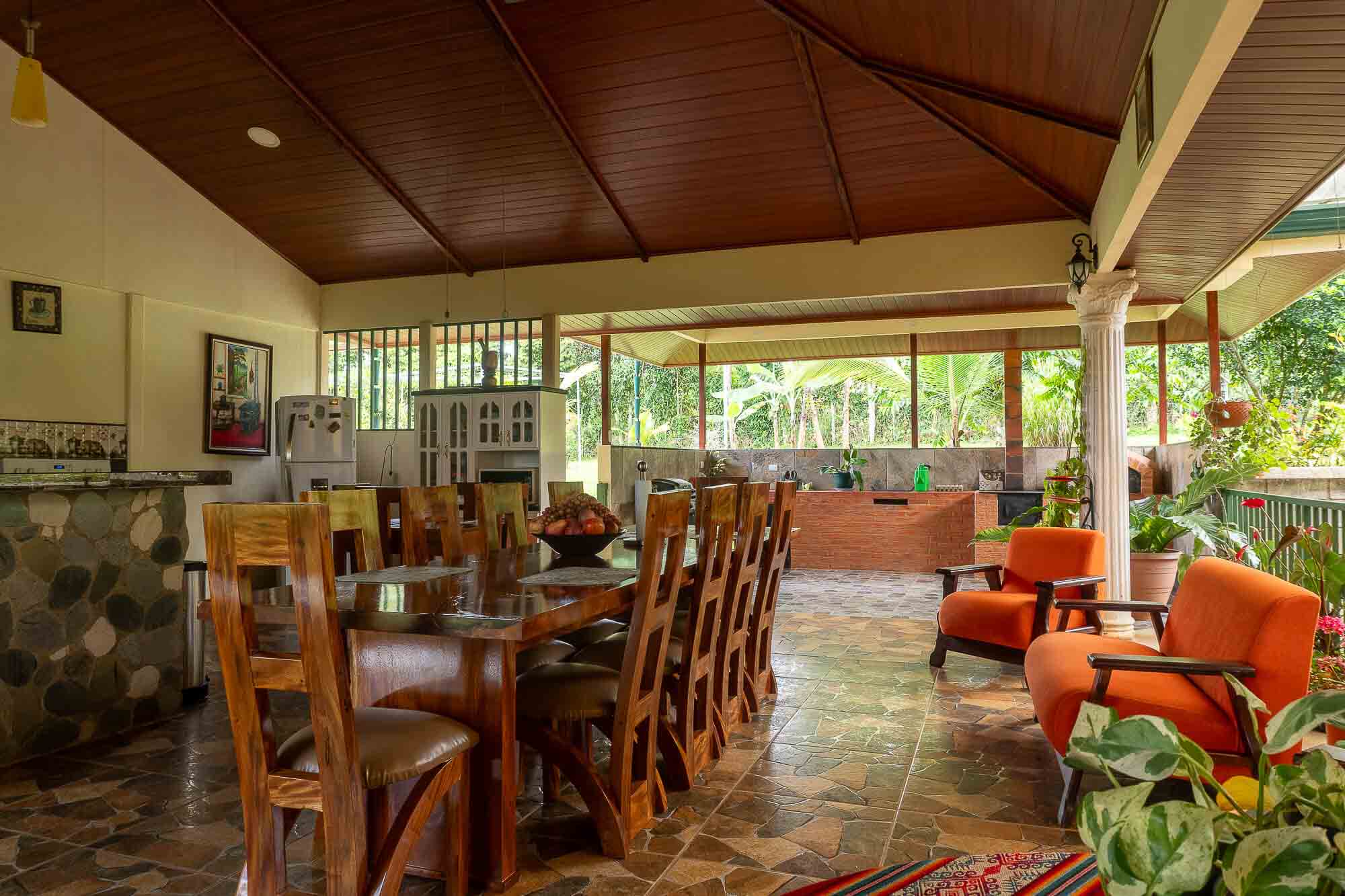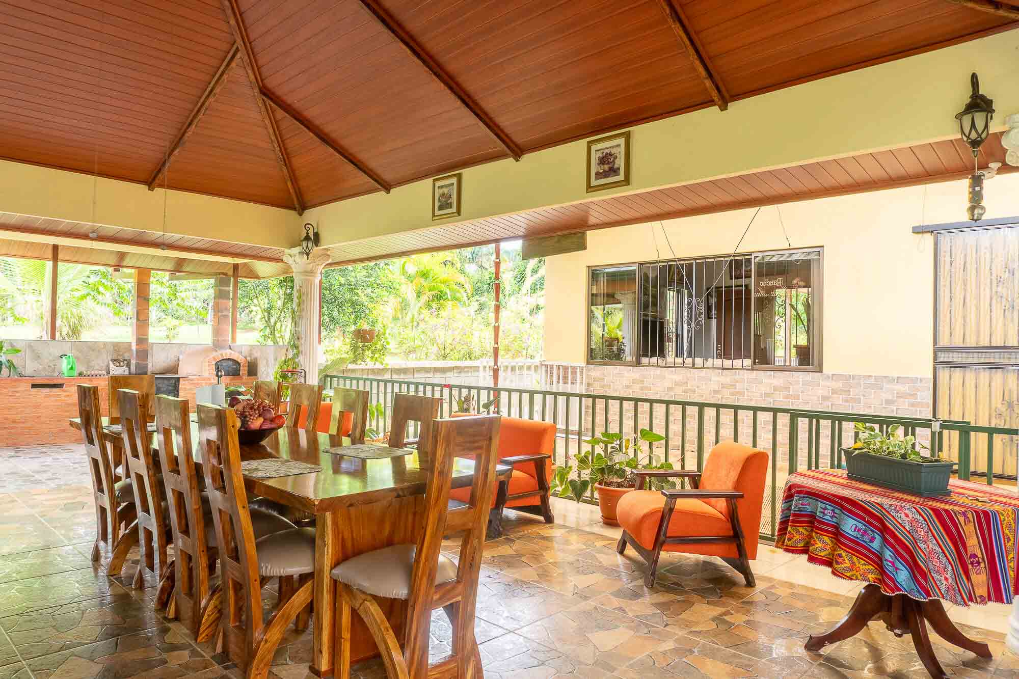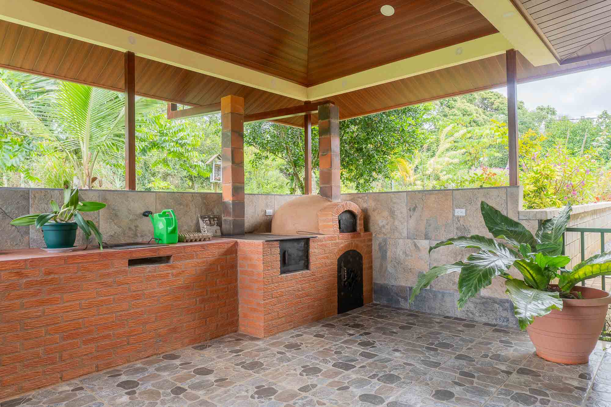 Rancho con fogón artesanal y corredores amplios – ideal para reuniones familiares y eventos al aire libre.